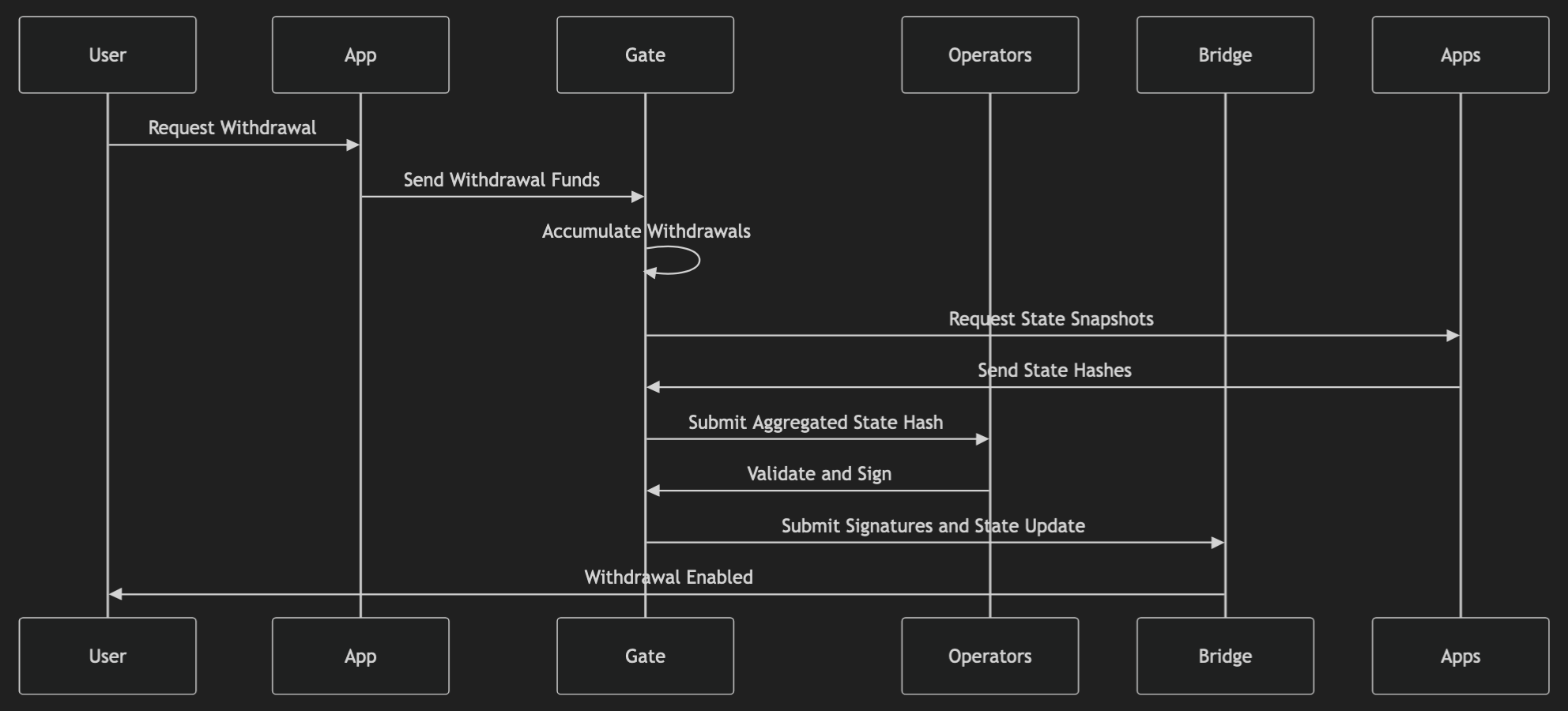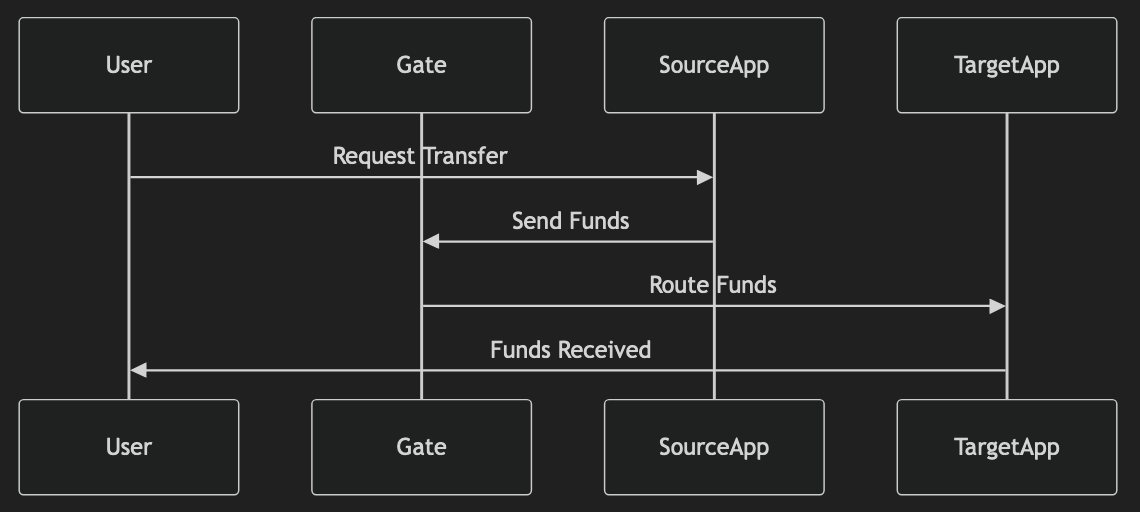 Withdrawals must go to the target app first, which then goes to the gate and