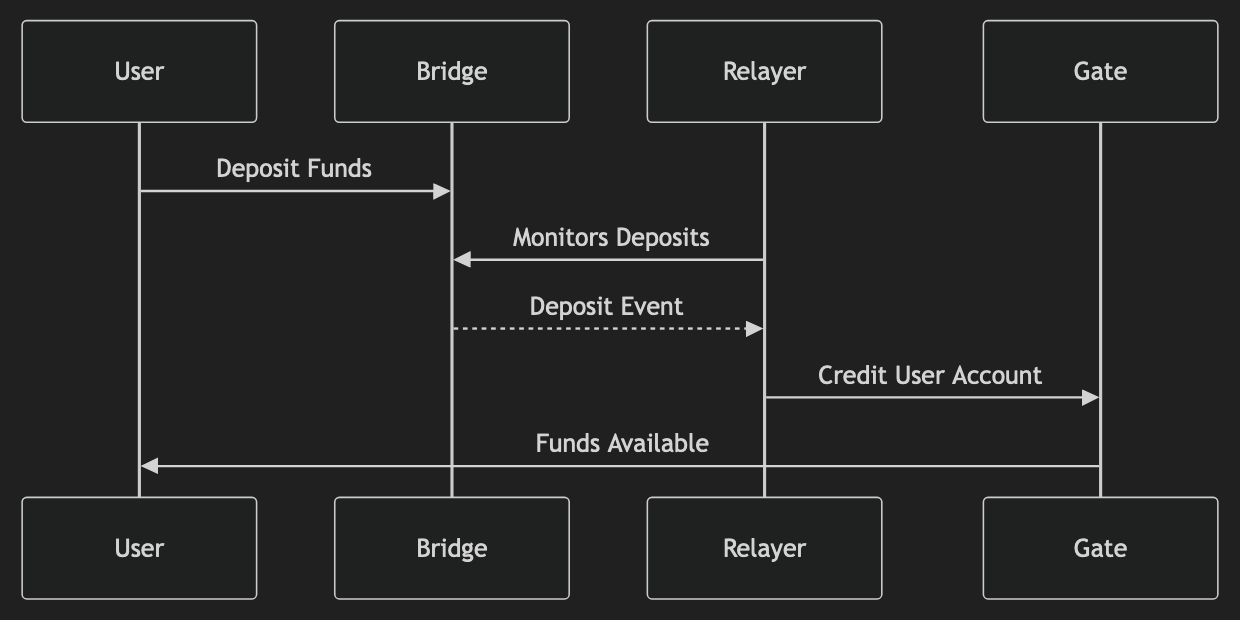 Deposits go first through the bridge, then the gate application in the network,